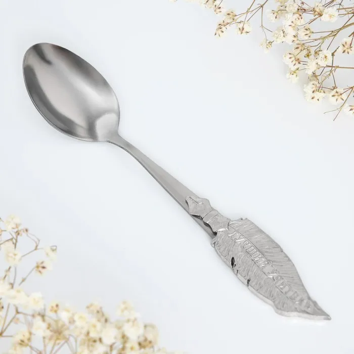 Ложка с фигурной ручкой, на которой вырезан комплимент, изготовлена из нержавеющий стали, – это позволяет использовать подарок по прямому назначению.