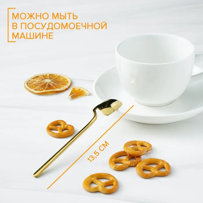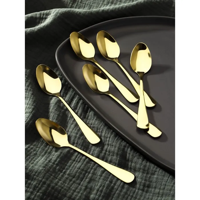 Ложка чайная Magistro Wave, длина 13.8 см, нержавеющая сталь, золотистая — Характеристики