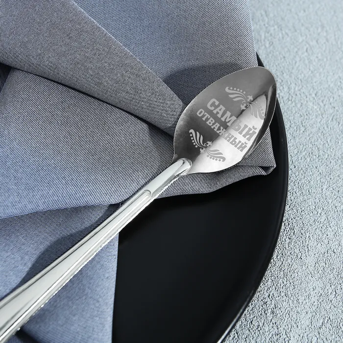Ложка с лазерной гравировкой и изящной рукояткой преподносится на красочной открытке. На оборотной стороне изделия специально отведено место для подписи: кому и от кого был вручён подарок.