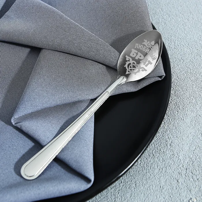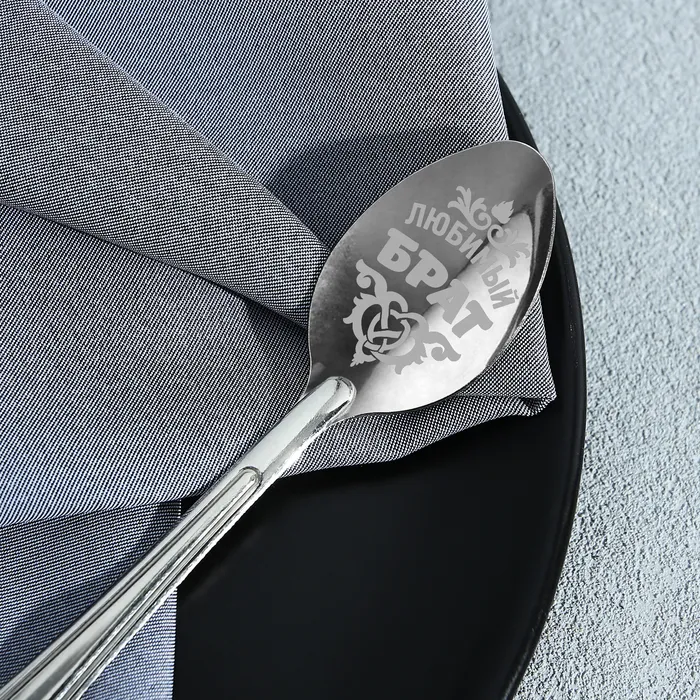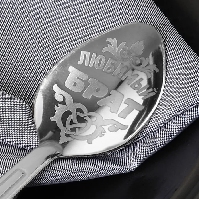 Ложка с лазерной гравировкой и изящной рукояткой преподносится на красочной открытке. На оборотной стороне изделия специально отведено место для подписи: кому и от кого был вручён подарок.