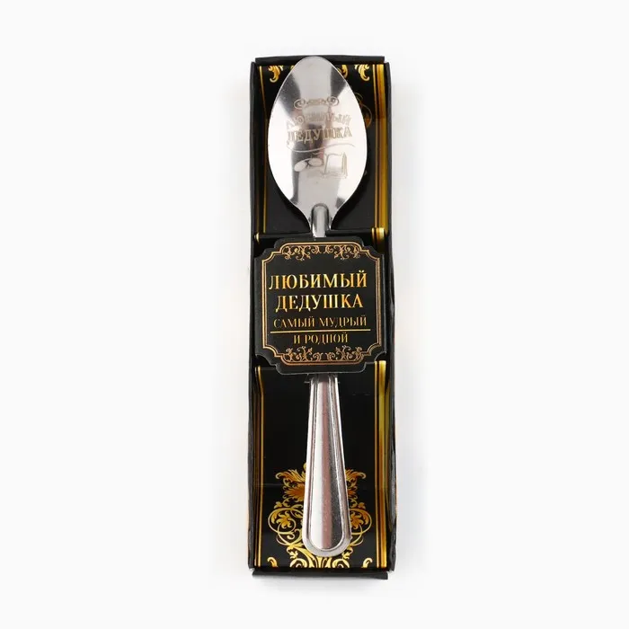 Ложка чайная с гравировкой «Любимый дедушка», в подарочной коробке, 3×14 см — Характеристики
