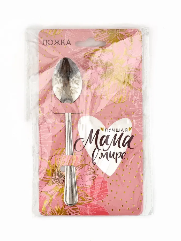 Ложка с лазерной гравировкой и изящной рукояткой преподносится на красочной открытке. На оборотной стороне изделия специально отведено место для подписи: кому и от кого был вручён подарок.