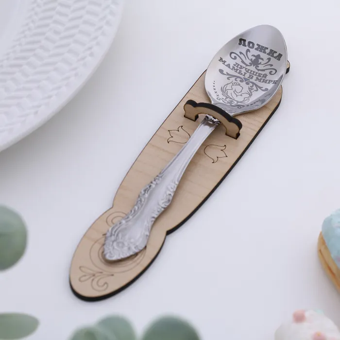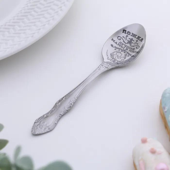 Чайная ложка из нержавеющей стали с гравировкой. Станет отличным небольшим презентом.
