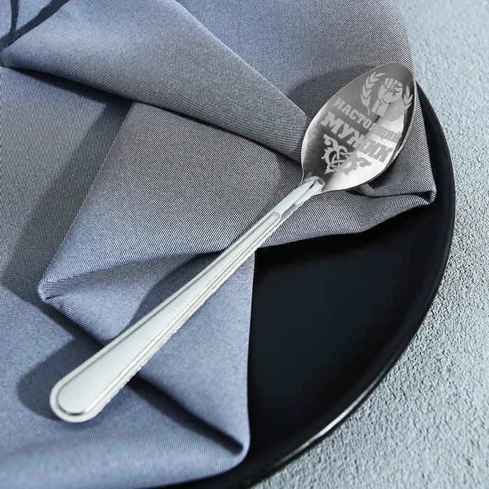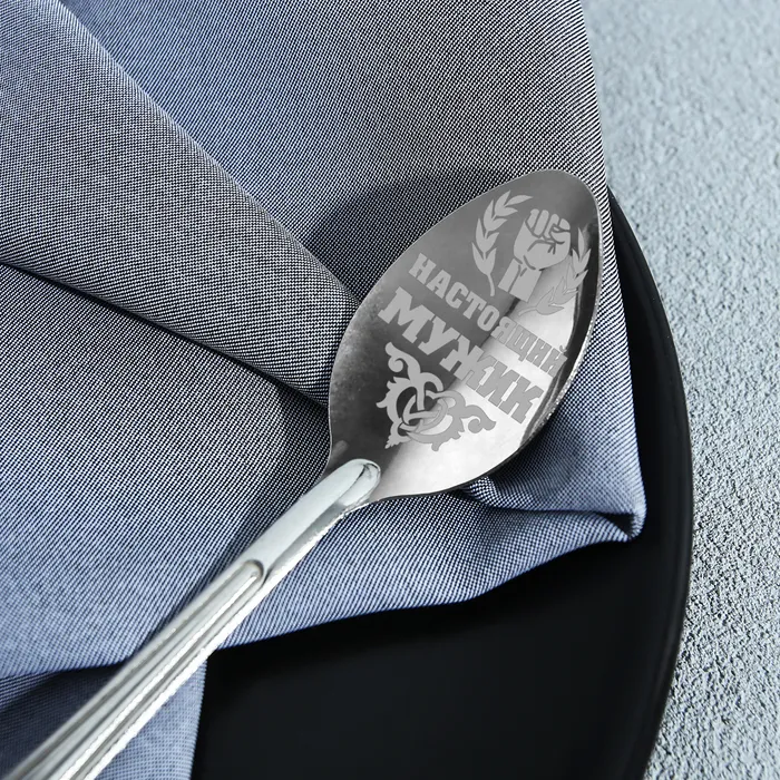 Ложка с лазерной гравировкой и изящной рукояткой преподносится на красочной открытке. На оборотной стороне изделия специально отведено место для подписи: кому и от кого был вручён подарок.