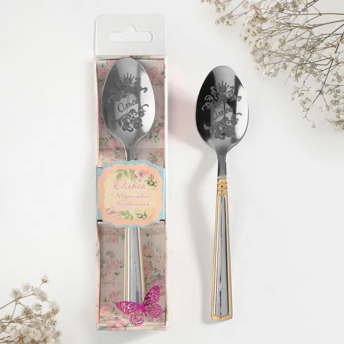 Ложка чайная с гравировкой «Ольга», в подарочной коробке, 3 х 15 см. — Характеристики