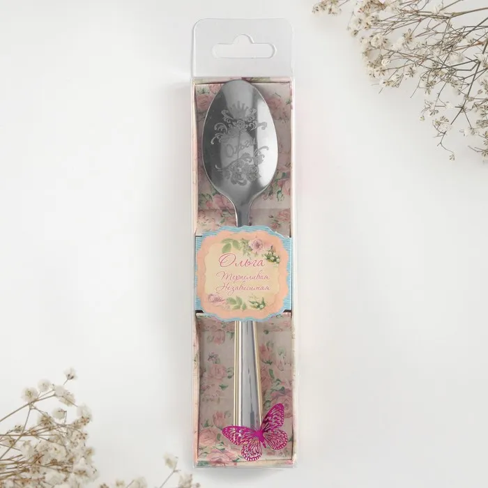 Именная ложка – не просто знак внимания, а полезный подарок, который всегда будет радовать глаз. Ложка в подарочной упаковке изготовлена из нержавеющий стали, имя и узор нанесены при помощи лазерной гравировки – это позволяет использовать подарок по прямому назначению.