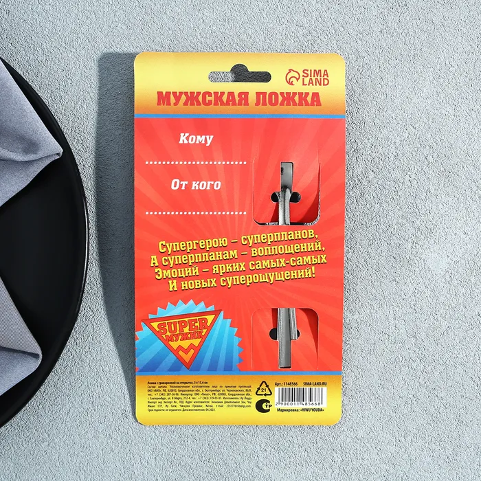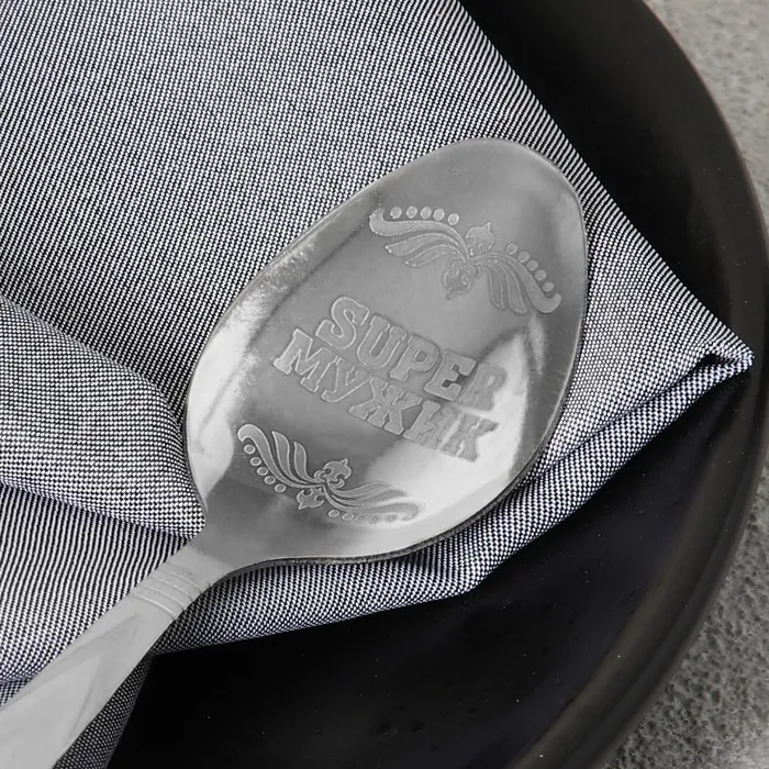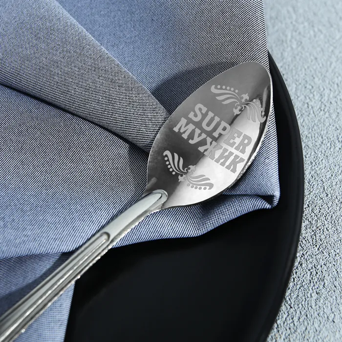 Ложка чайная с гравировкой «Super мужик», на подарочной открытке, 3×14 см — Характеристики