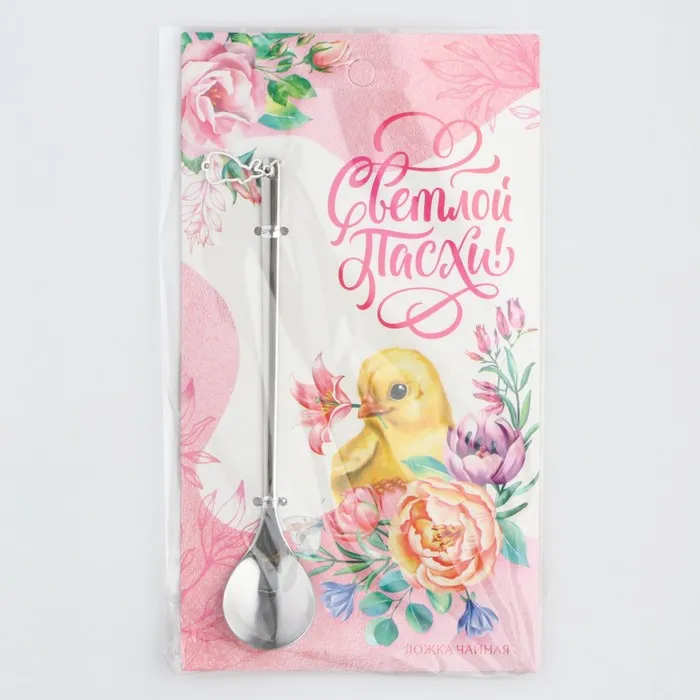 Пасхальная чайная ложка - это креативный и оригинальный предмет для приготовления и подачи чая во время пасхальных праздников. Ложка украшена подвесом, что делает её привлекательной при сервировки праздничного стола на пасхальные праздники. Ложка станет отличным подарком или знаком внимания для родных и близких людей. Если у вас или ваших близких есть коллекция посуды или пасхальных украшений, пасхальная чайная ложка может стать прекрасным дополнением к этой коллекции. Использование пасхальных чайных ложек может стать традицией, которая добавит волшебства к пасхальным утрам или часам чаепития во время праздника.