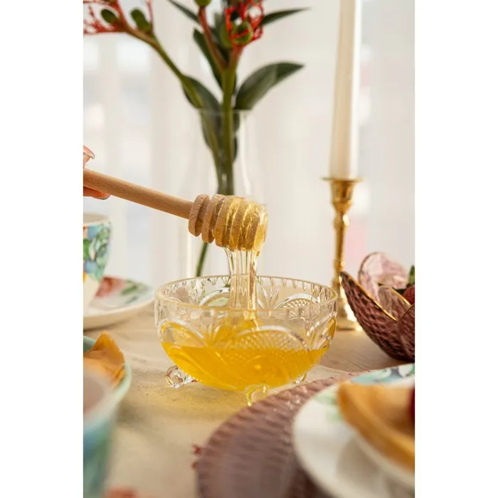 - Удобная форма: Позволяет аккуратно набирать и дозировать мёд, не допуская его проливания.