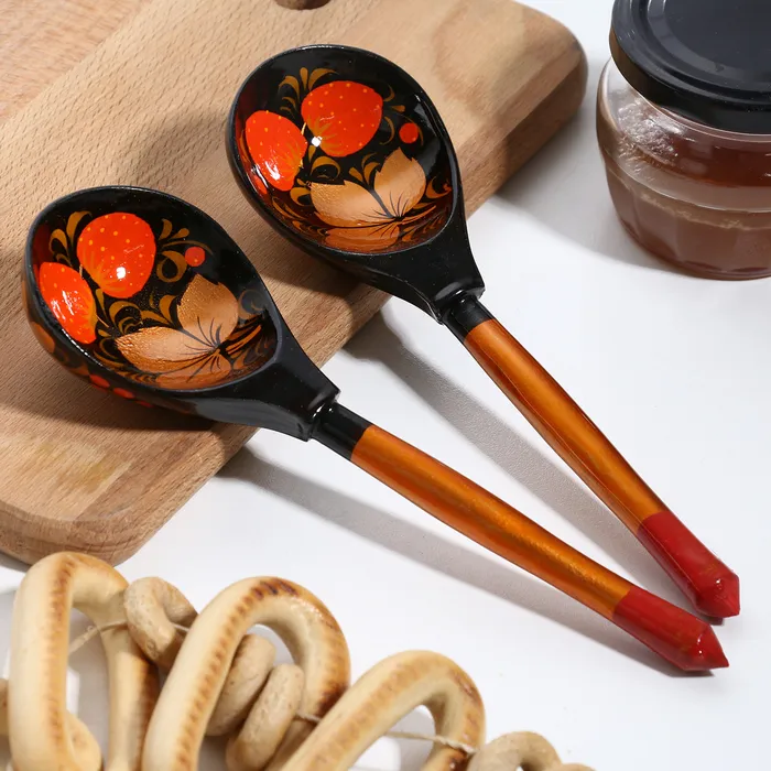 Ложка деревянная «Хохлома», полубаская, традиционная роспись — Характеристики