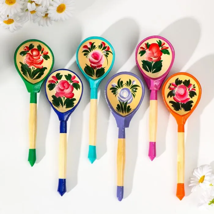 Изготовленная из светлой берёзы, она приятно ложится в руку, а её длина 19 см делает использование комфортным как для взрослых, так и для детей. Бежевая ручка с яркой цветочной росписью создаёт тёплую атмосферу за столом.