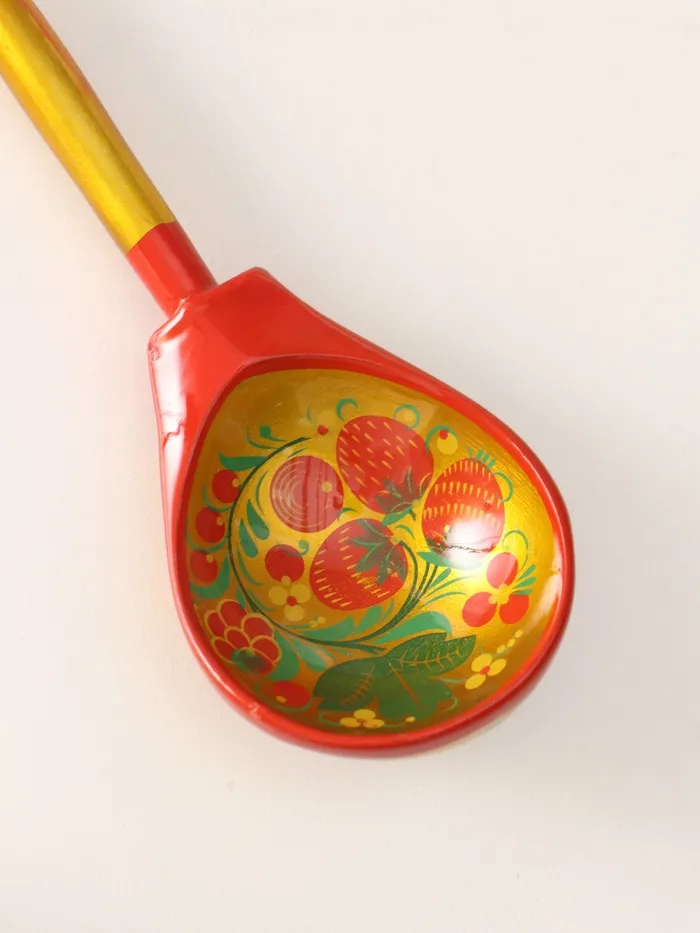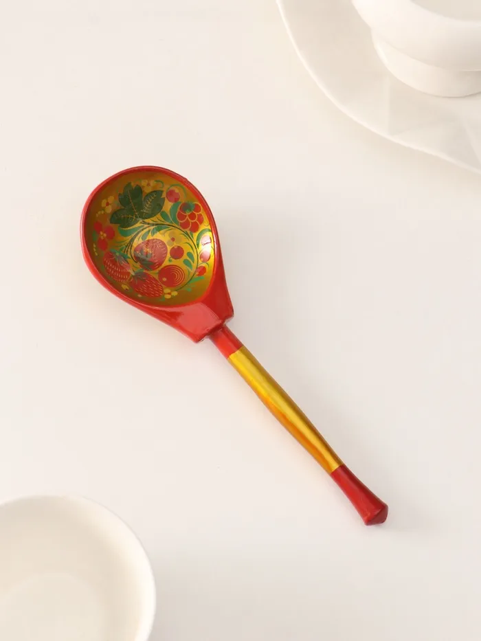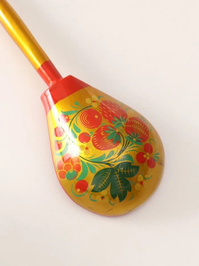 Погрузитесь в атмосферу народного мастерства с деревянной столовой ложкой, созданной в духе традиционной хохломской росписи. Её форма — полубаская, длина — 19 см, что делает её удобной для повседневного использования и одновременно выразительной как предмет декора. Основной цвет — золотистый, дополненный красными акцентами, создающими эффект праздника даже за самым простым столом.
