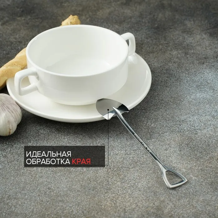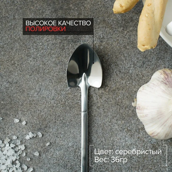 Ложка десертная Magistro «Лопата» изготовлена из качественной нержавеющей стали. Такие столовые приборы прекрасно подойдут для ежедневного использования и для особых торжественных случаев. Прибор имеет необычный дизайн: ложка выполнена в виде лопаты. Она стильно смотрится в сервировке, отлично подойдёт для фотокомпозиций и красивой подачи фруктов и десертов.