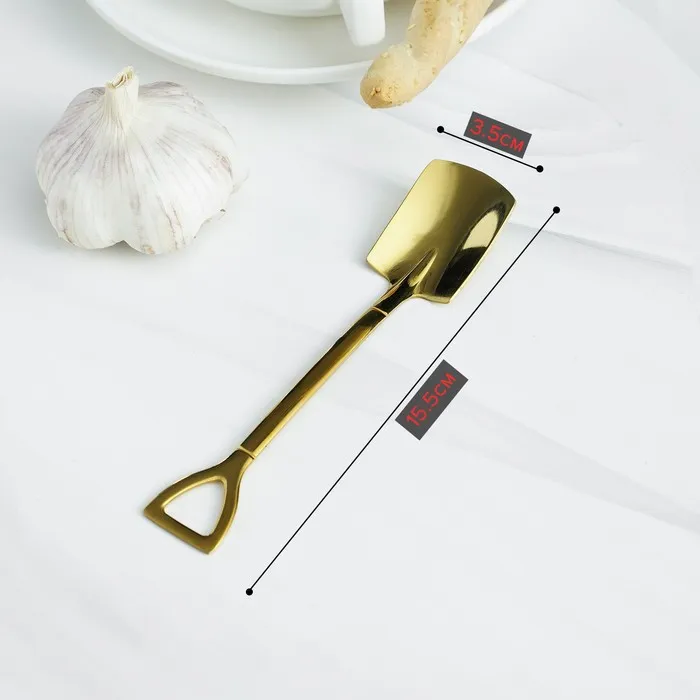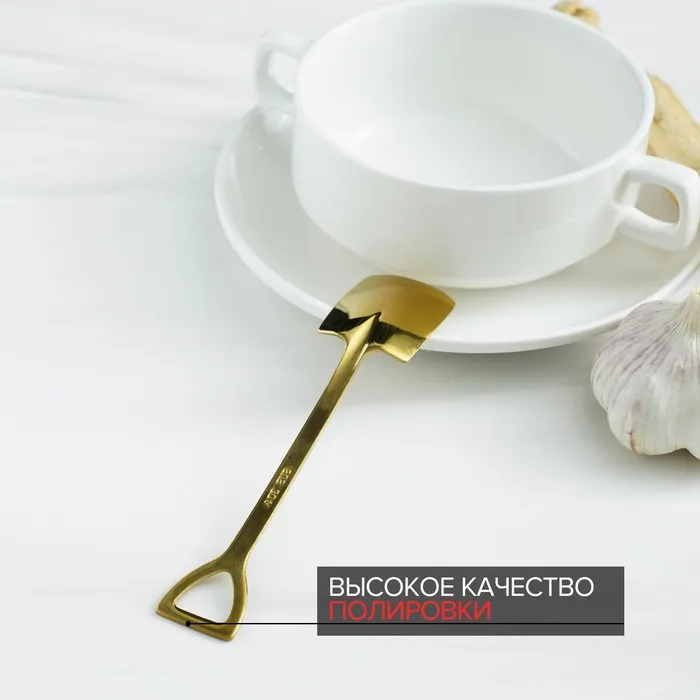 Ложка десертная из нержавеющей стали Magistro «Лопата», длина 15.5 см, форма прямоугольная, золотистая — Характеристики