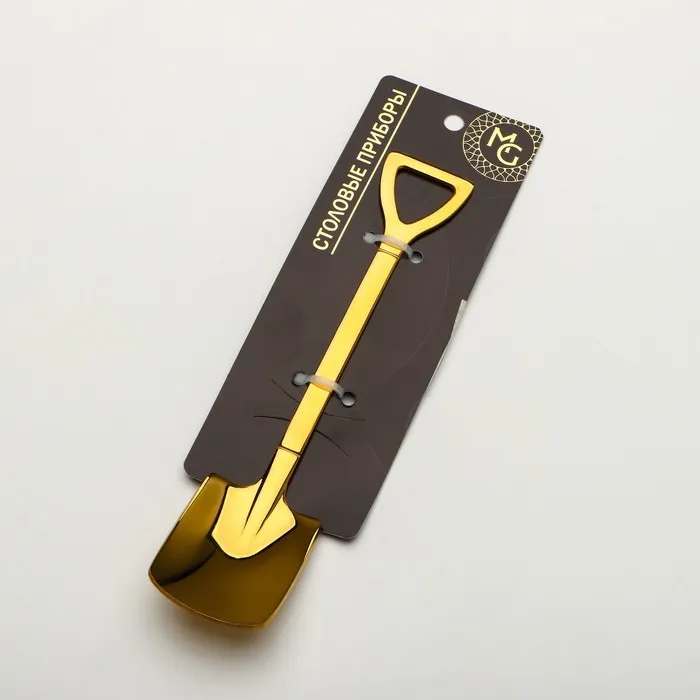 Ложка десертная из нержавеющей стали Magistro «Лопата», длина 15.5 см, форма прямоугольная, золотистая
