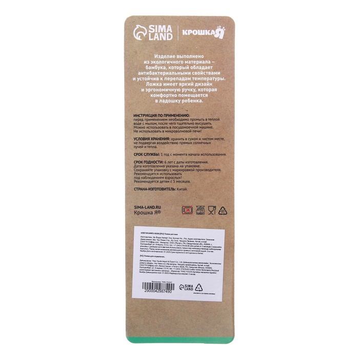 Ложка детская для кормления Крошка Я, бамбук, МИКС — Характеристики
