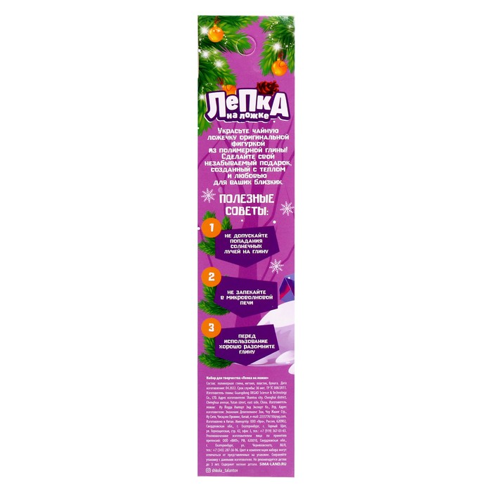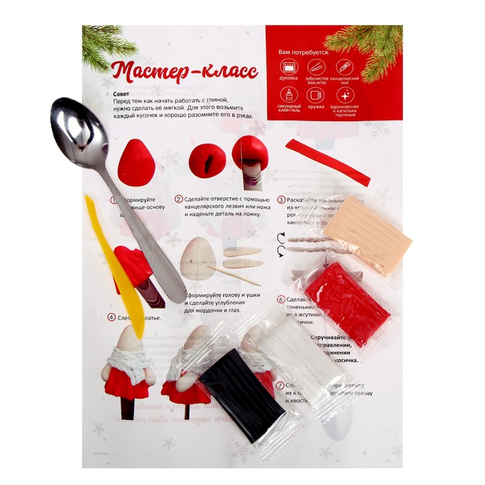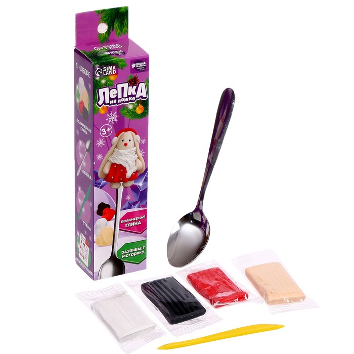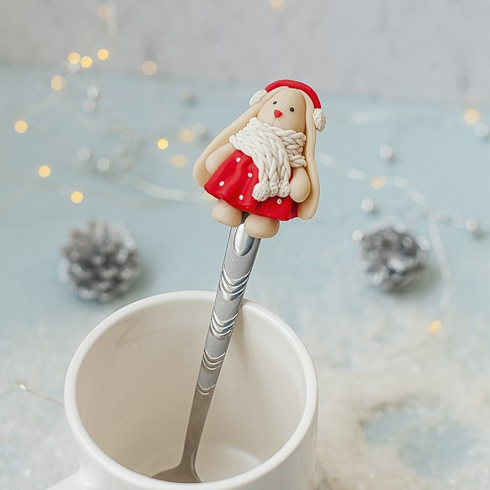 Ложка для декора полимерной глиной «Новый год! Зайка в шарфике», набор для творчества — Характеристики