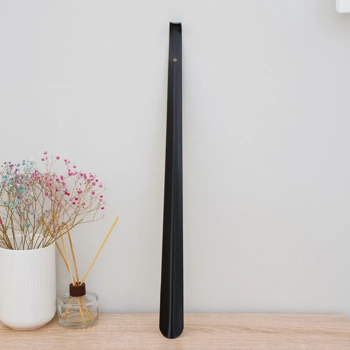 Ложка для обуви Доляна, с крючком, металлическая, 52×4 см, чёрная — Характеристики