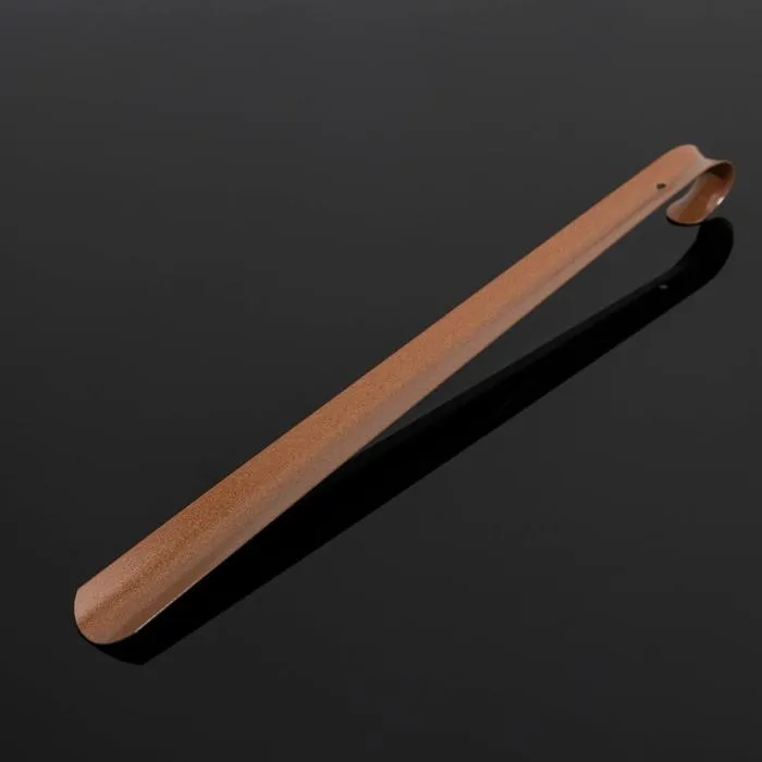Ложка для обуви изготовлена из прочного металла толщиной 1,5 мм, что помогает ей не деформироваться и не гнуться при правильном использовании.