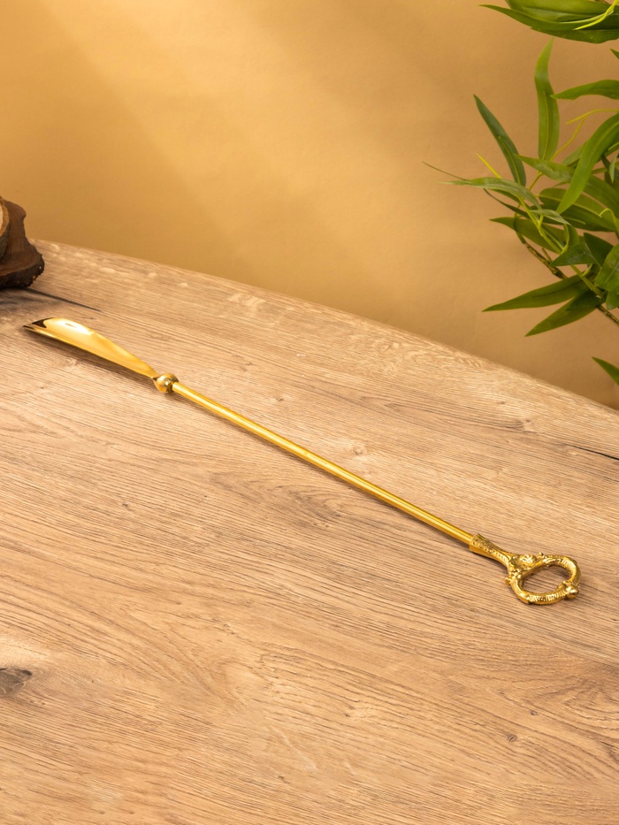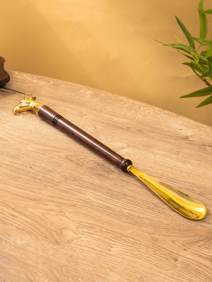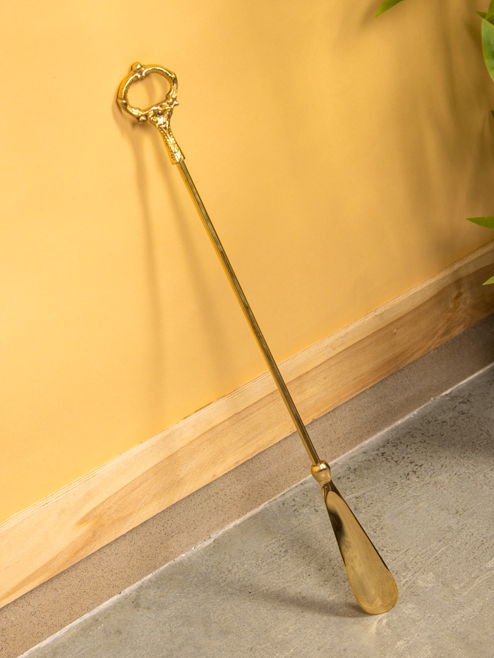 Ложка для обуви «Царская» — аксессуар для бережного ухода за модельной обувью. Длина 51 см обеспечивает комфортное использование без наклонов. Цельнолитая латунная конструкция с позолотой сочетает функциональность с роскошным видом.