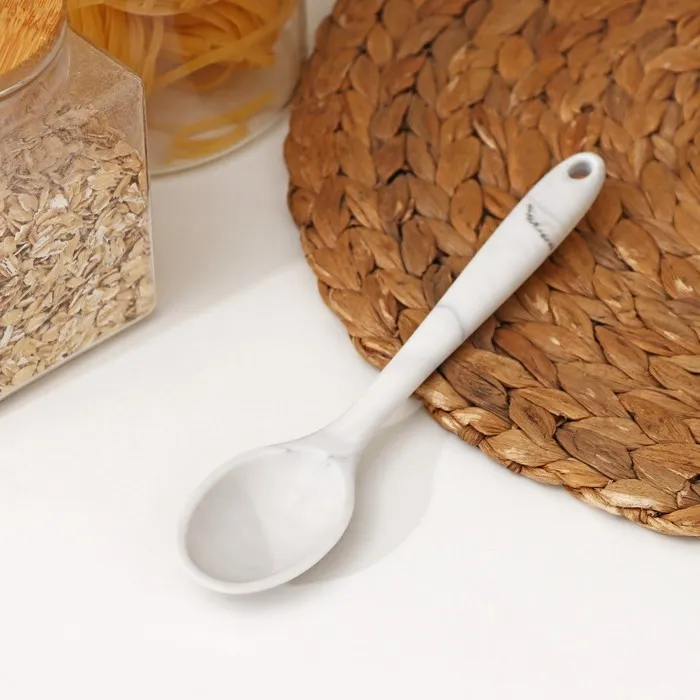 Ложка гарнирная Доляна «Мрамор», силикон, 20,5×4,3 см, цвет белый — Характеристики