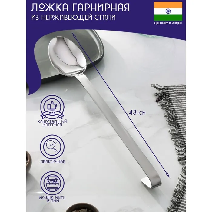 Ложка гарнирная из нержавеющей стали Доляна, h=25 см, толщина 2.2 мм, 410 сталь — Характеристики