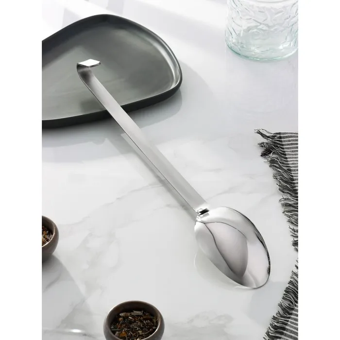Гарнирная ложка из нержавеющей стали незаменима во время повседневной готовки, при создании кулинарных шедевров. Изделие подойдёт для помешивания и снятия пробы с готовящихся блюд, а также для раздачи уже готового угощения.
