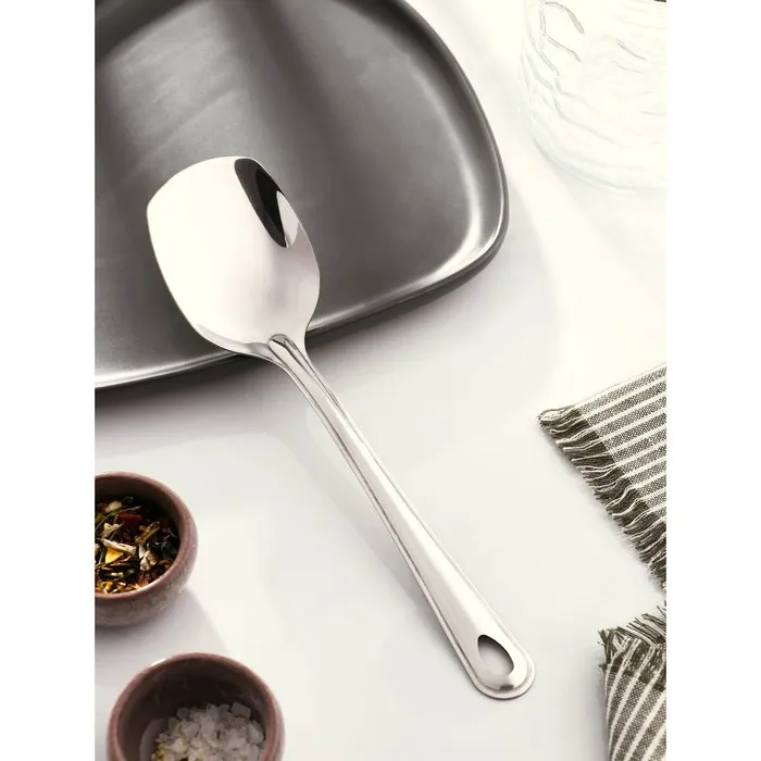 Гарнирная ложка станет незаменимым помощником как во время повседневной готовки, так и при создании кулинарных шедевров для торжественных событий. Изделие подойдёт для помешивания и снятия пробы с готовящихся блюд, а также для раздачи уже готового угощения.