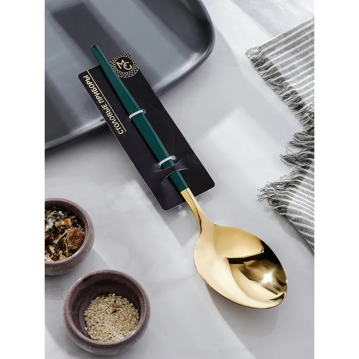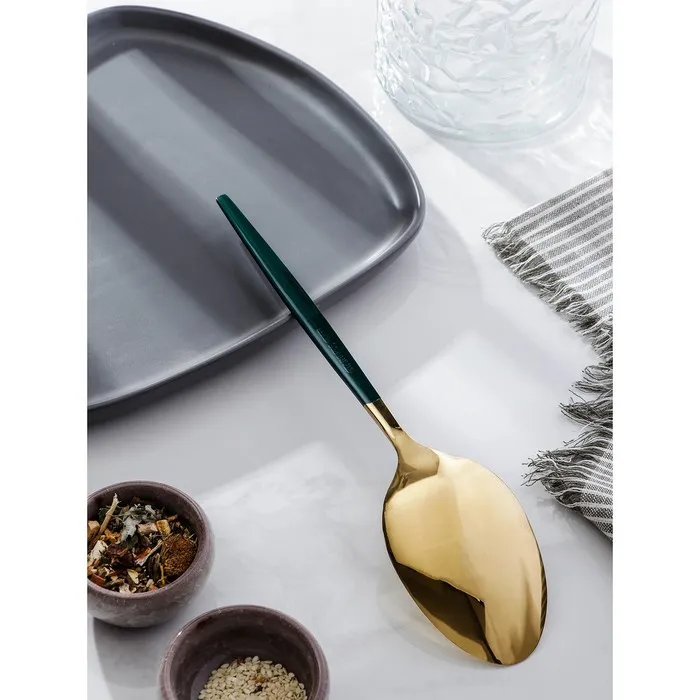 Ложка гарнирная из нержавеющей стали Magistro «Грэйс», h=27,5 см, цвет ручки зелёный, цвет головы золотой — Характеристики