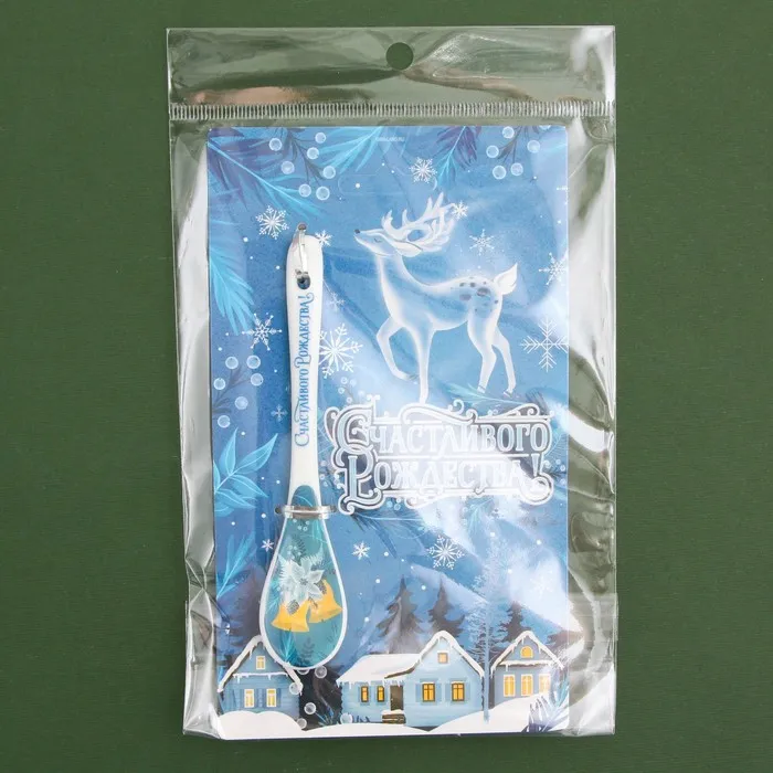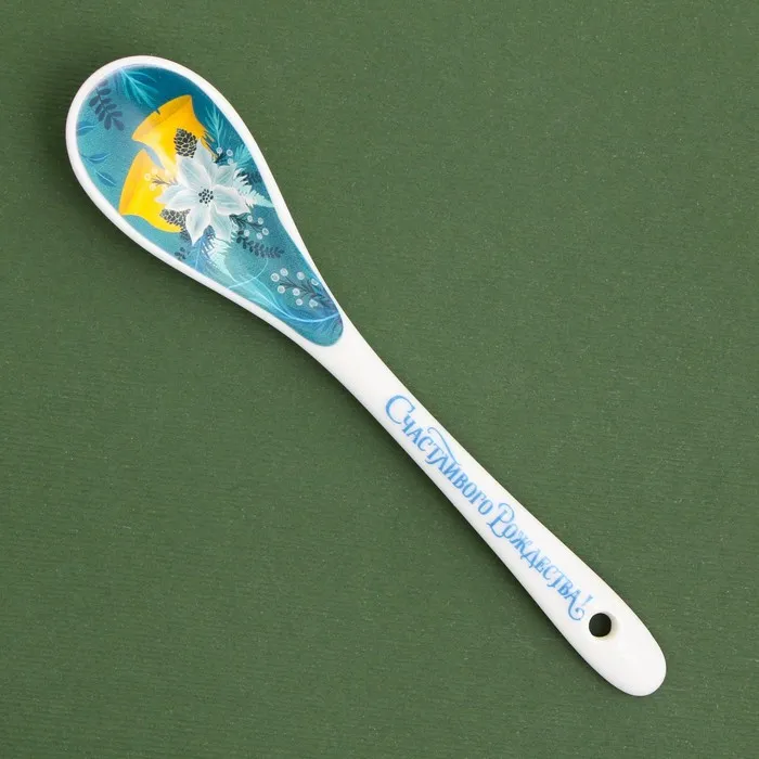 Ложка новогодняя «Счастливого Рождества!», керамика, 2.5×12.6 см — чудесный подарок, способный сделать грядущий год таким, каким вы пожелаете. А современный новогодний дизайн открытки не оставят равнодушным, и ваш подарок запомнится надолго!
