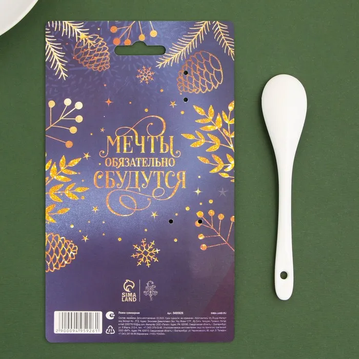 Ложка новогодняя «Время чудес и волшебства», керамика, 2.5×12.6 см — чудесный подарок, способный сделать грядущий год таким, каким вы пожелаете. А современный новогодний дизайн открытки не оставят равнодушным, и ваш подарок запомнится надолго!