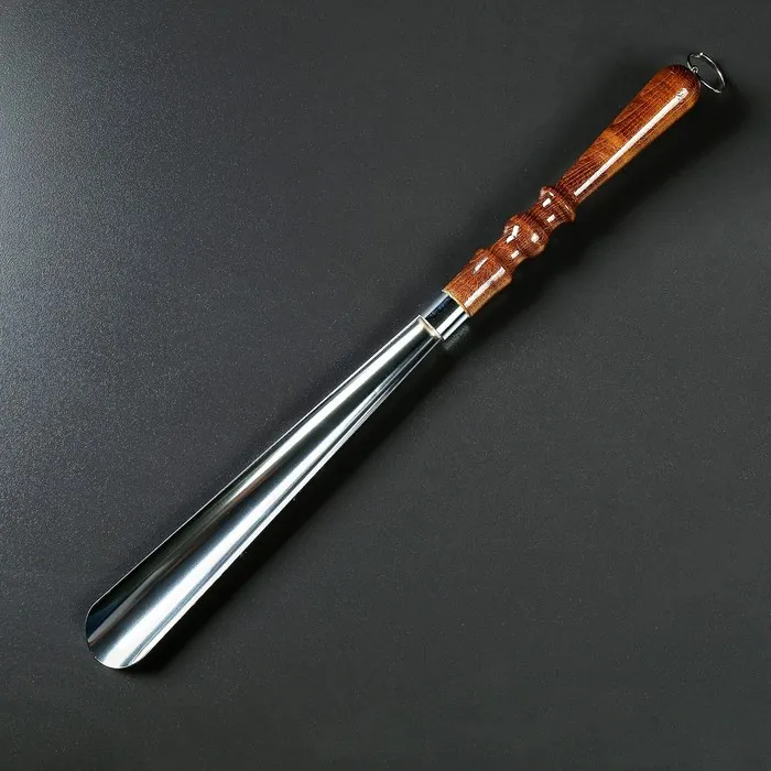 Крепкая металлическая обувная ложка с деревянной буковой ручкой. Станет вашим верным помощником и послужит отличным подарком.