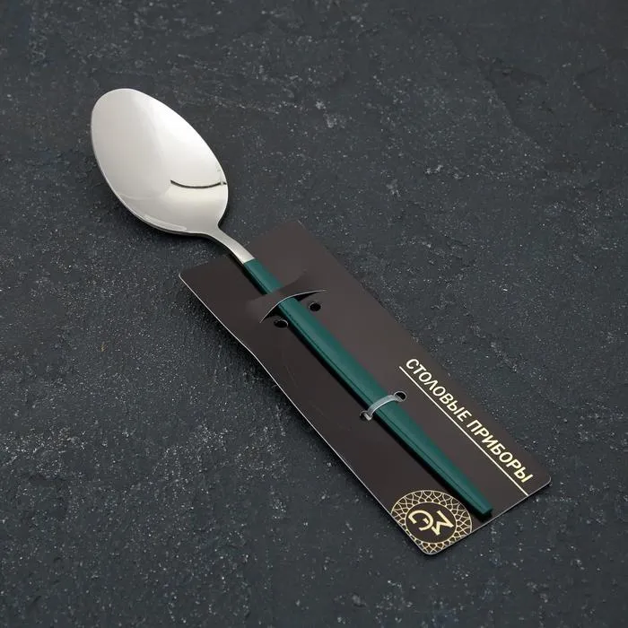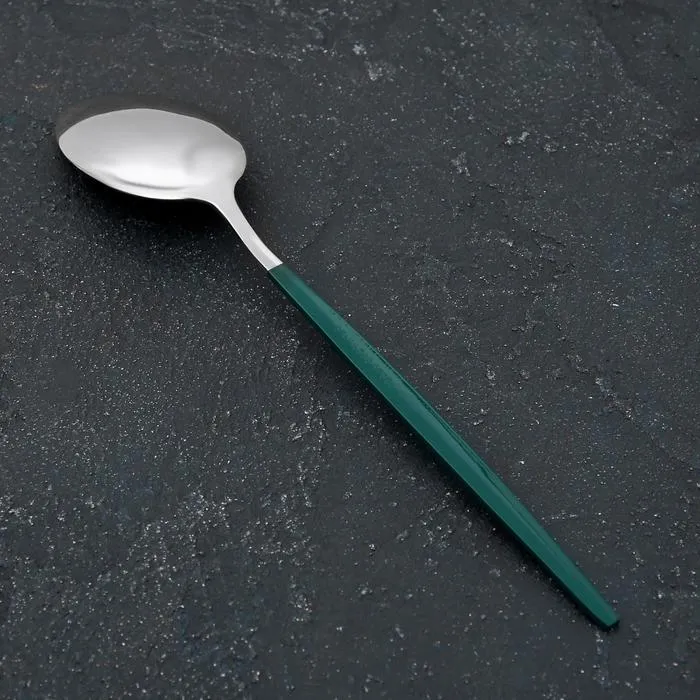 Ложка столовая из нержавеющей стали Magistro «Блинк», длина 22 см, на подвесе, цвет серебряный, зеленая ручка — Характеристики