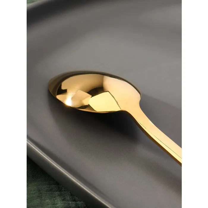 Ложка чайная Magistro «Олин GOLD» — идеальный выбор для тех, кто ценит качество и стиль. Изготовленная из нержавеющей стали, она обладает рядом преимуществ: долговечностью, гигиеничностью и удобством использования. Благодаря современному дизайну и золотистому цвету, она станет прекрасным дополнением к вашему сервировочному столу.