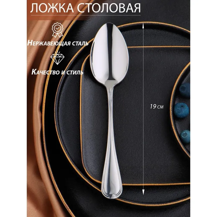 Ложка столовая «Миддлтон», длина 19 см, толщина 3 мм, цвет серебряный — Характеристики