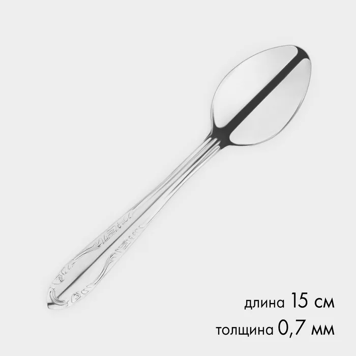 Ложка столовая «Росинка», длина 19,5 см, толщина 1,8 мм, цвет серебряный — Характеристики