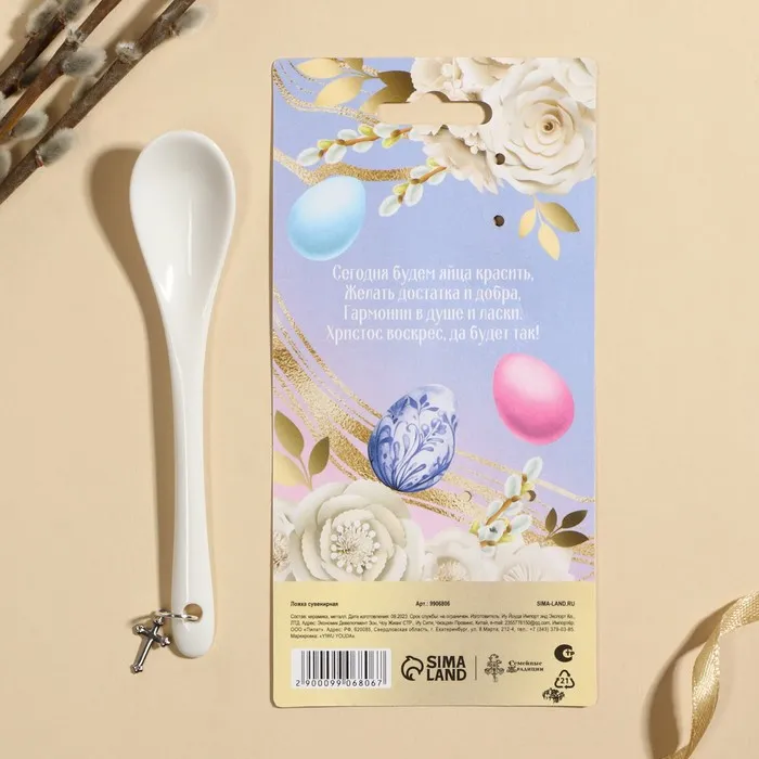 Пасхальная чайная ложка - это креативный и оригинальный предмет для приготовления и подачи чая во время пасхальных праздников. Ложка украшена подвесом, что делает её привлекательной при сервировки праздничного стола на пасхальные праздники. Ложка станет отличным подарком или знаком внимания для родных и близких людей. Если у вас или ваших близких есть коллекция посуды или пасхальных украшений, пасхальная чайная ложка может стать прекрасным дополнением к этой коллекции. Использование пасхальных чайных ложек может стать традицией, которая добавит волшебства к пасхальным утрам или часам чаепития во время праздника.