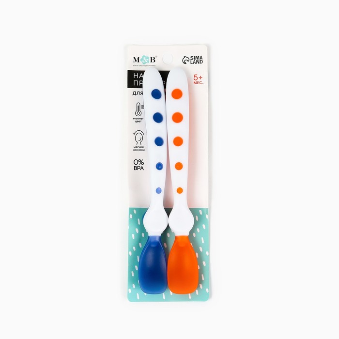Ложки детские для кормления, термочувствительные, 16,5см., 2 шт., цвет синий/оранжевый