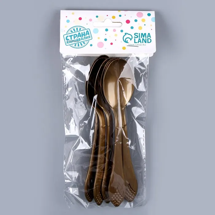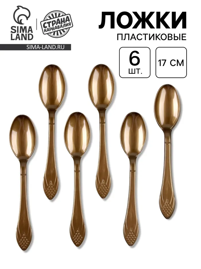 Ложки пластиковые, в наборе 6 шт., цвет золото — Характеристики