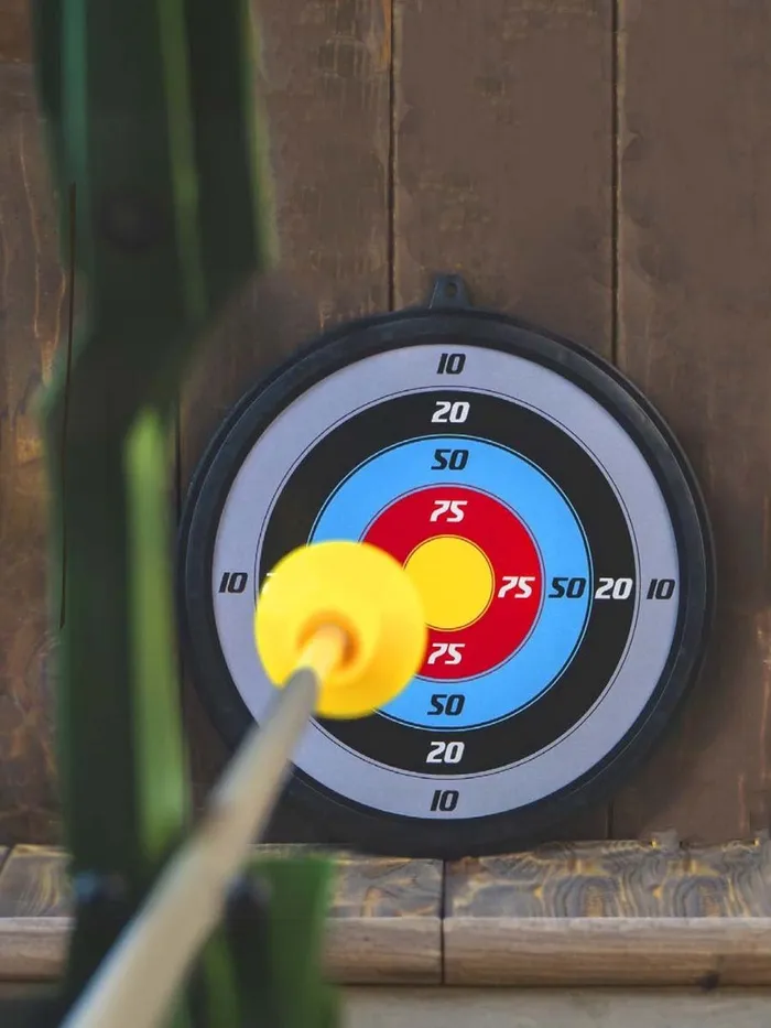Установите мишень и отойдите от неё на два метра. Натяните тетиву, прицельтесь и попадите прямо в яблочко. Стрелы на липучках мгновенно преодолеют расстояние и зафиксируются на табло с цифрой.
