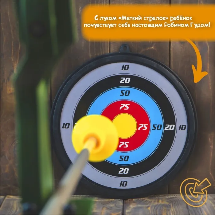 С луком «Меткий стрелок» ребёнок почувствует себя настоящим Робин Гудом! В процессе игры маленький непоседа тренирует глазомер, развивает внимательность и координацию движений. При этом оружие не требует большой физической силы.
