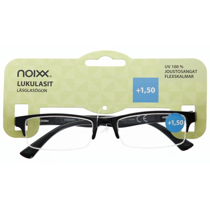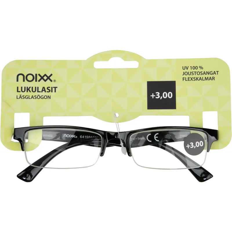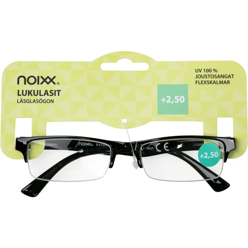 Черные чтительные очки, у которых рамка охватывает только верхнюю часть линз, оставляя нижнюю часть легкой и безрамочной. Очки оснащены гибкими дужками, равномерной диоптрией по всей поверхности линз и обеспечивают 100% защиту от ультрафиолетового излучения. Цвет: черный.