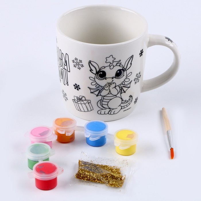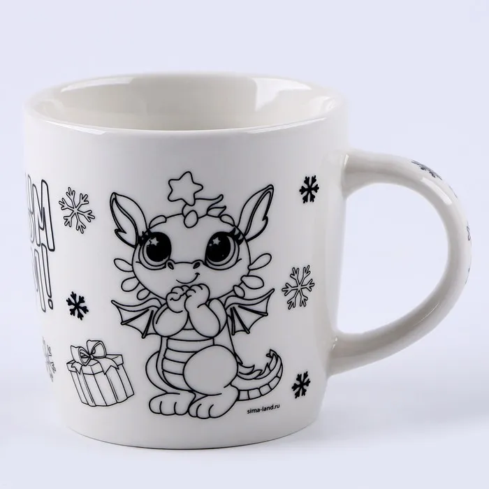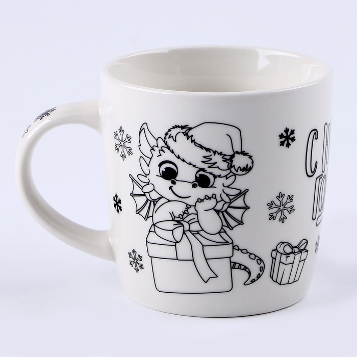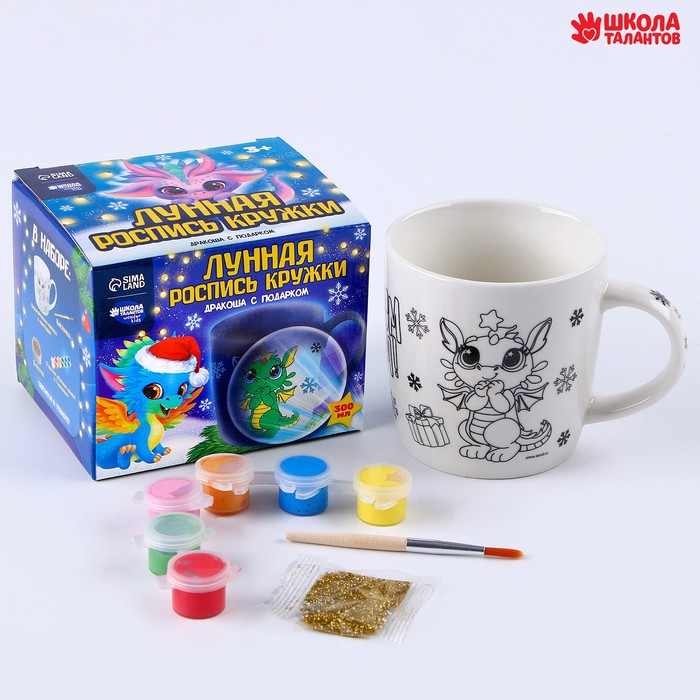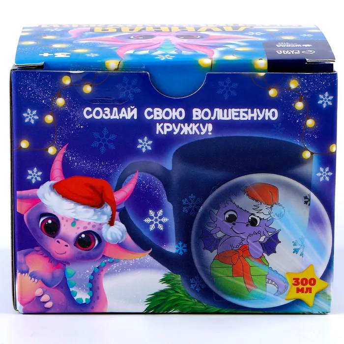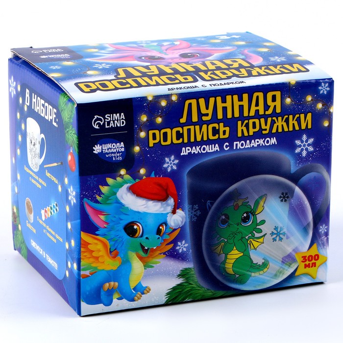 Лунная роспись кружки на новый год «Дракоша с подарком», 300 мл — Характеристики