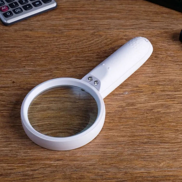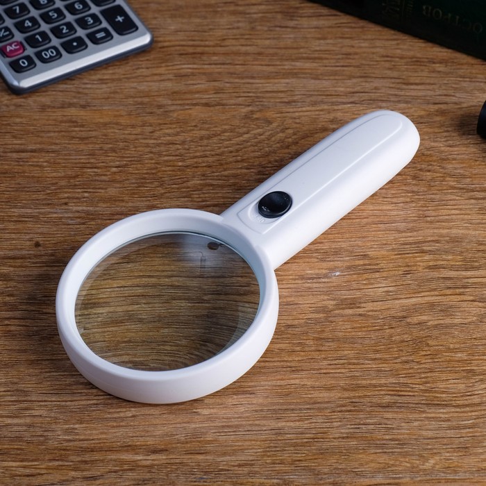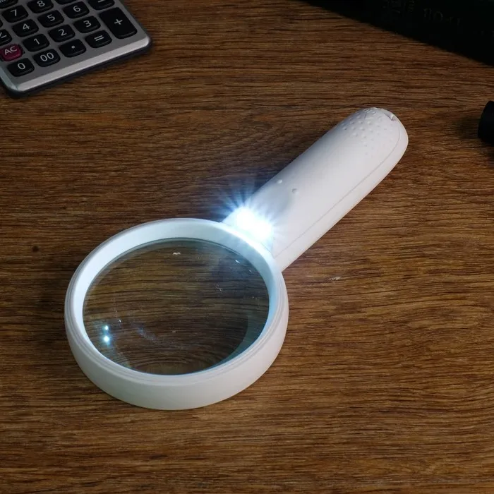 Лупа 3х, d=8см, с подсветкой, 2 ААА, белая — Характеристики