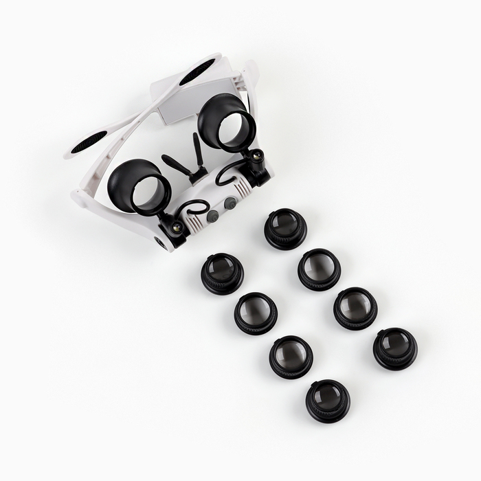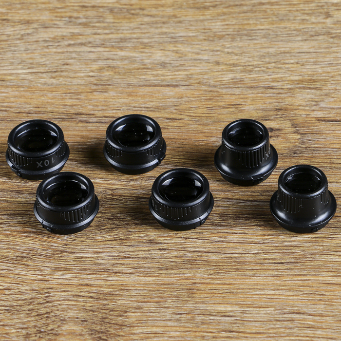 В комплект входят четыре пары линз (всего 8 шт) с увеличением от 10 до 25 крат (10х, 15х, 20х, 25х), что позволяет выбрать оптимальное увеличение для разных задач.