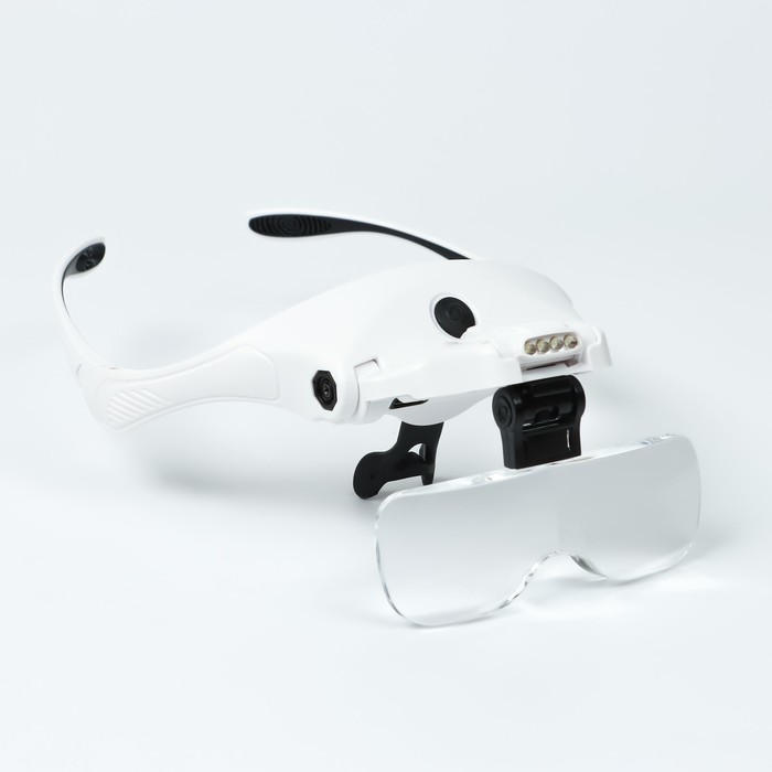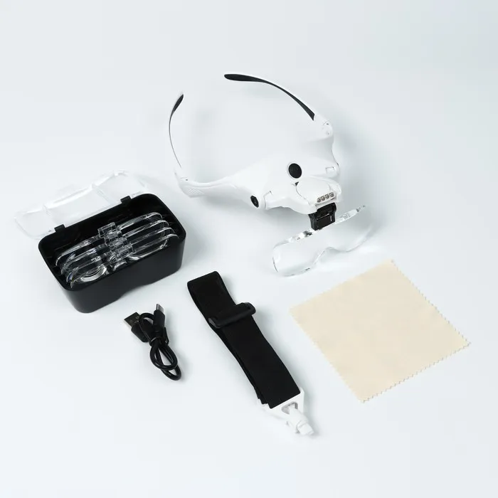 Лупа налобная (очки), 5 линз в комплекте, подсветка, индикатор заряда