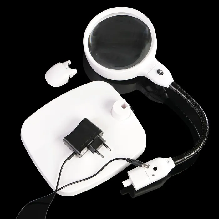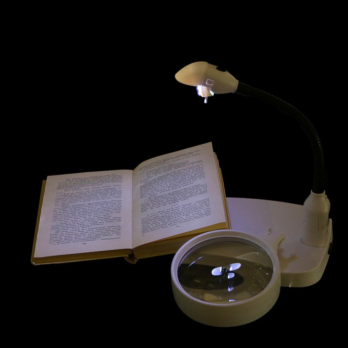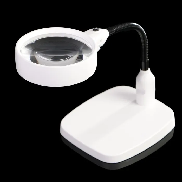 Лупа настольная 10х d=12 см, на гибкой ножке с подсветкой, белая — Характеристики