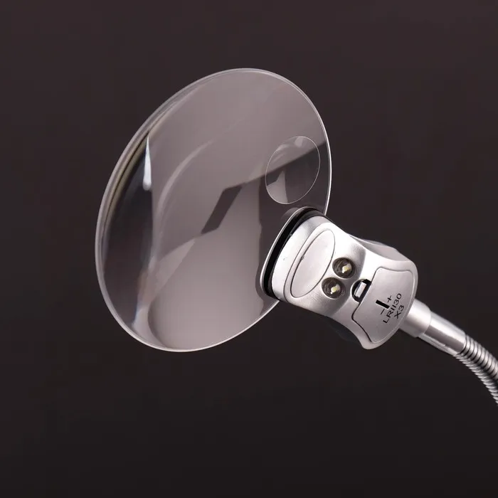 Лупа настольная 2,5х, 8х, диаметр 9см, на гибкой ножке, с подсветкой — Характеристики