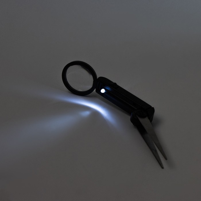 Лупа с пинцетом, линза 25мм, подсветка — Характеристики