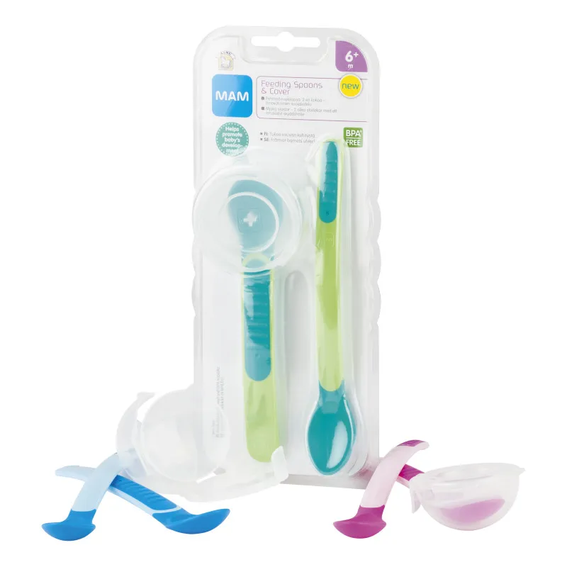Ainu MAM кормительные ложки и чехол Lusikka включают в себя две ложки разных размеров. Длинной ложкой легко достать до дна даже самых высоких баночек с едой. Благодаря ей малыш и родитель могут держать ложку вместе. Более короткая и широкая ложка специально разработана для того, чтобы малыш мог удобно держать её маленькими ручками.